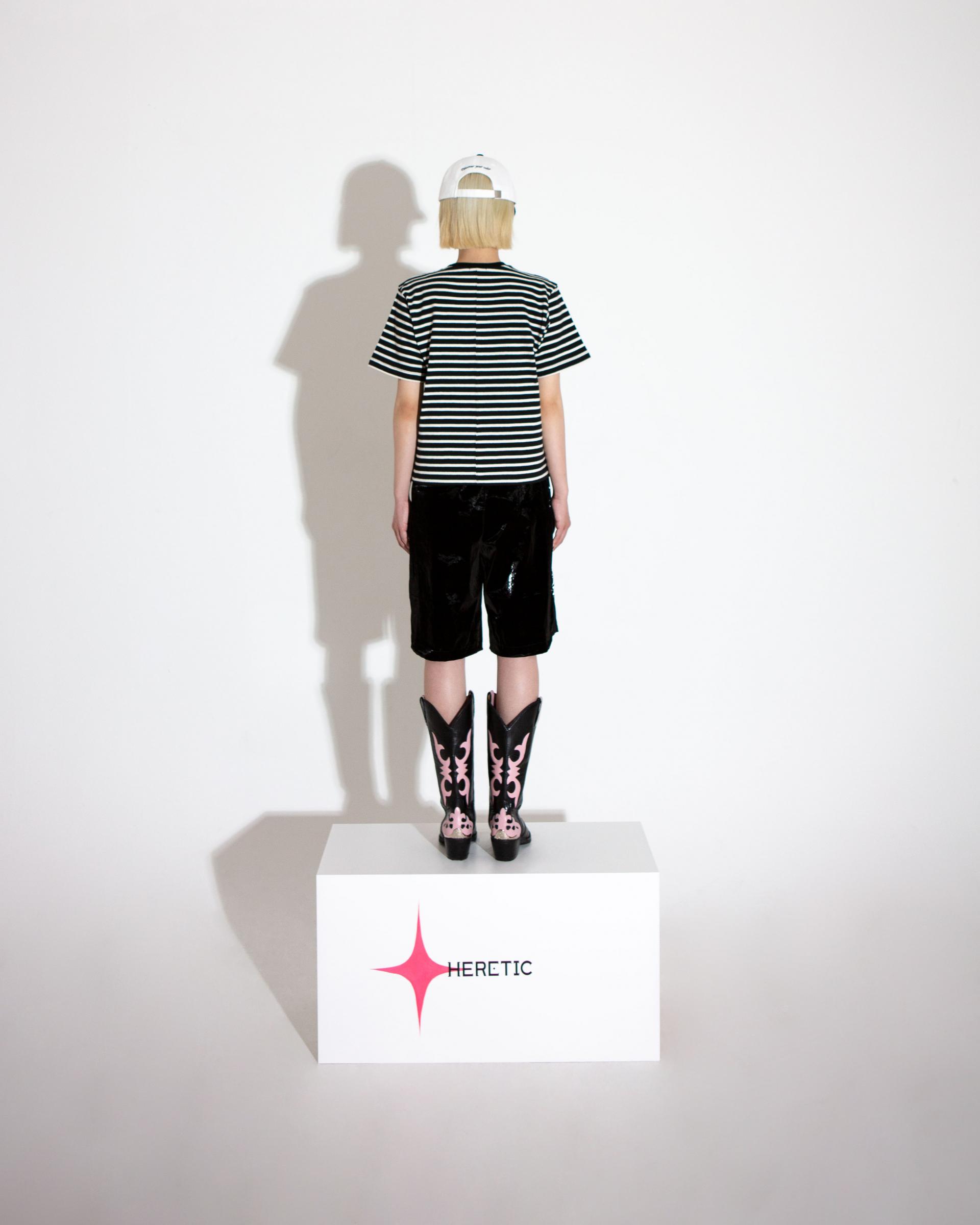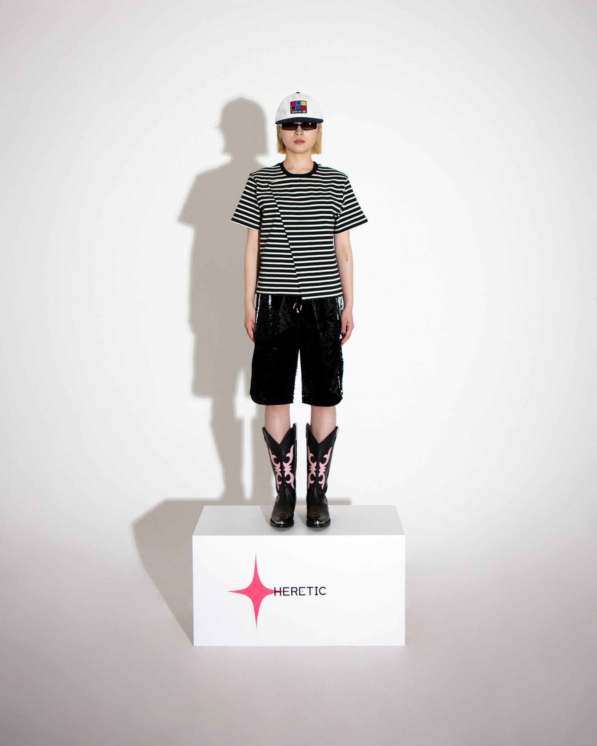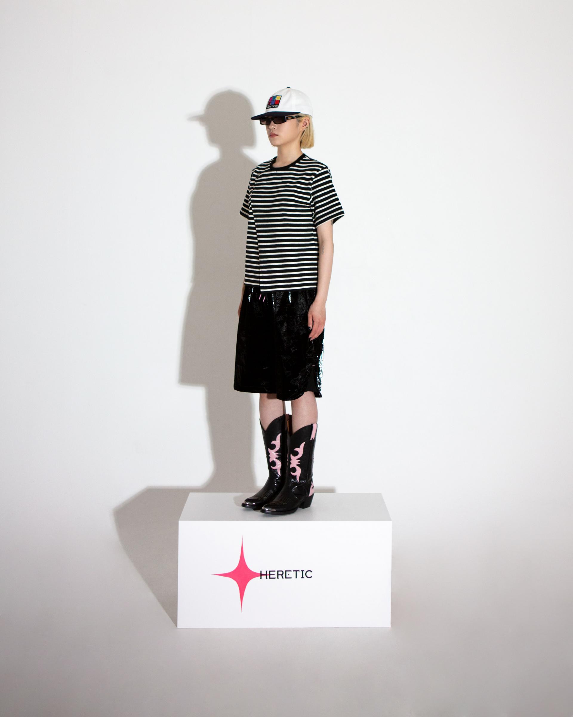 - 측면의 절개 없이 홀패턴으로 제작되어 비대칭적인 실루엣과 끝을 잡아주는 바텍(-)으로 HERETIC만의 디테일을 담아냈으며,