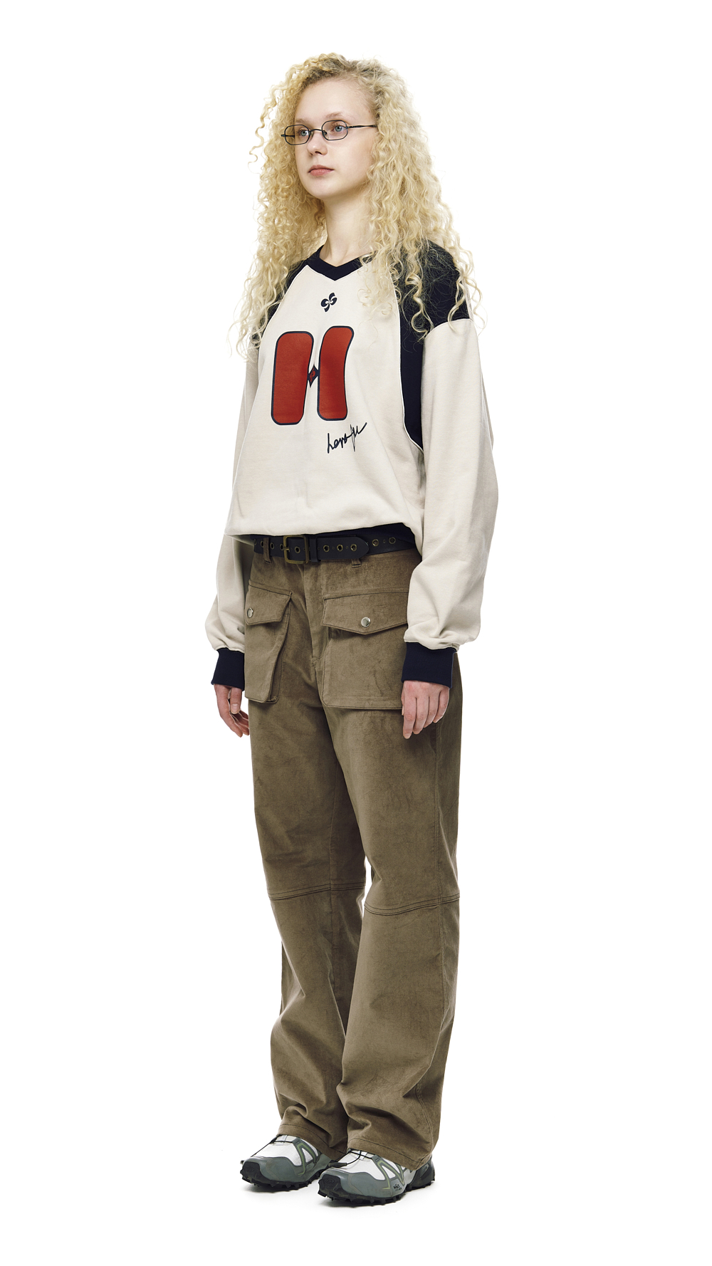 네크라인은 브이넥으로 설정해 레이어드를 통한 다이나믹한 스타일링이 가능하도록 했습니다.