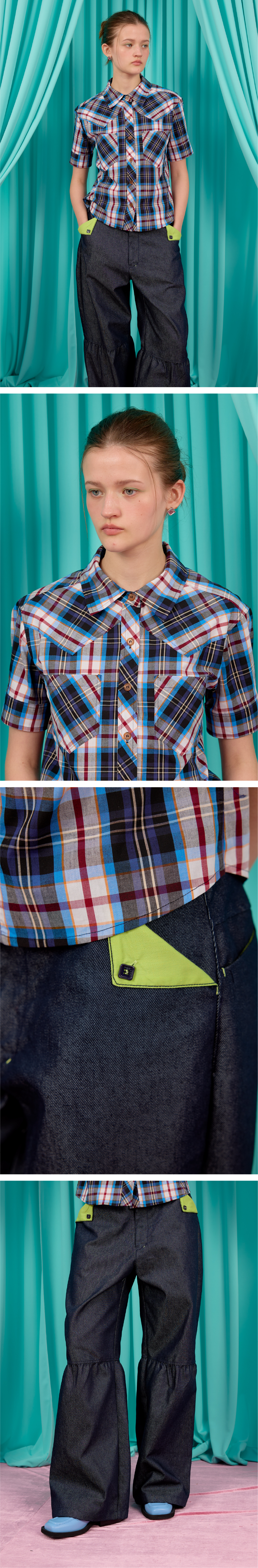 WESTERN CHECK SHORT SLEEVE SHIRT / blue