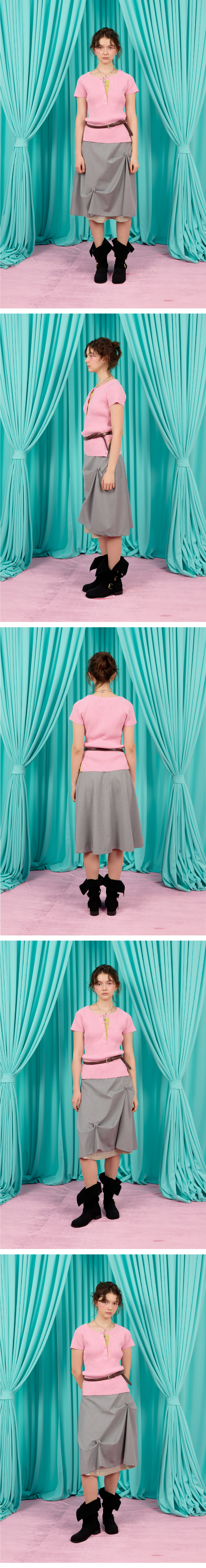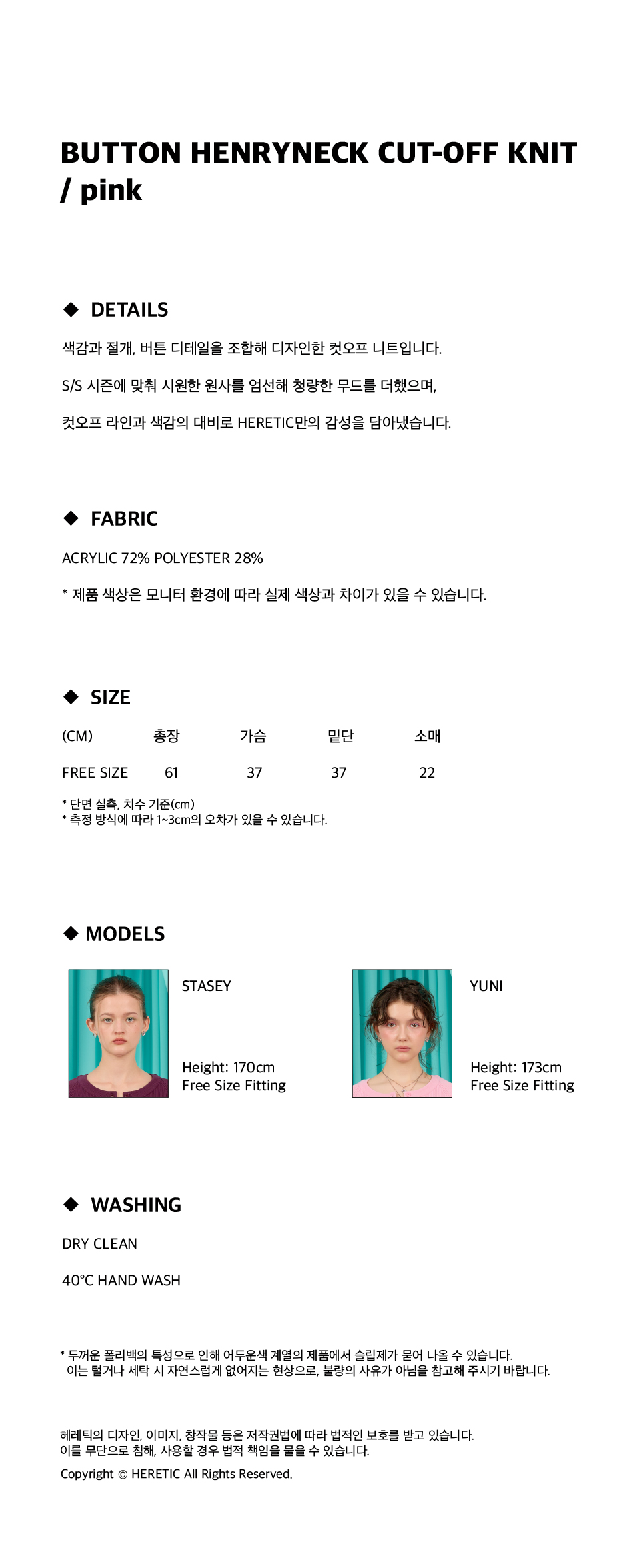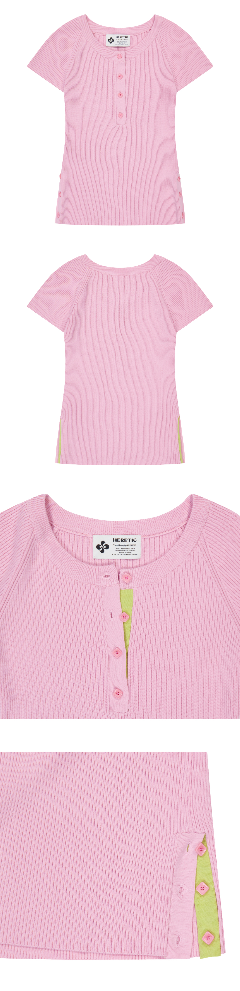 BUTTON HENRYNECK CUT-OFF KNIT / pink