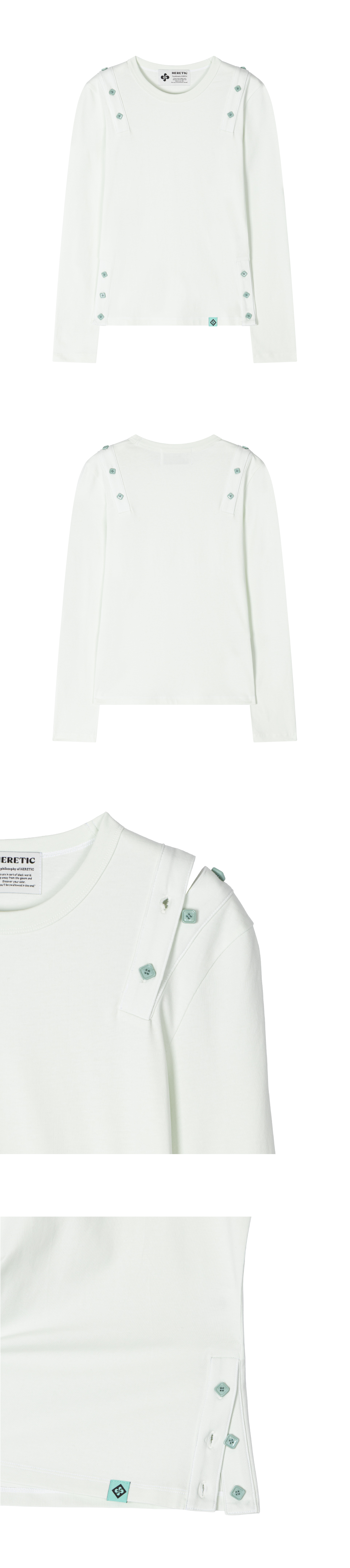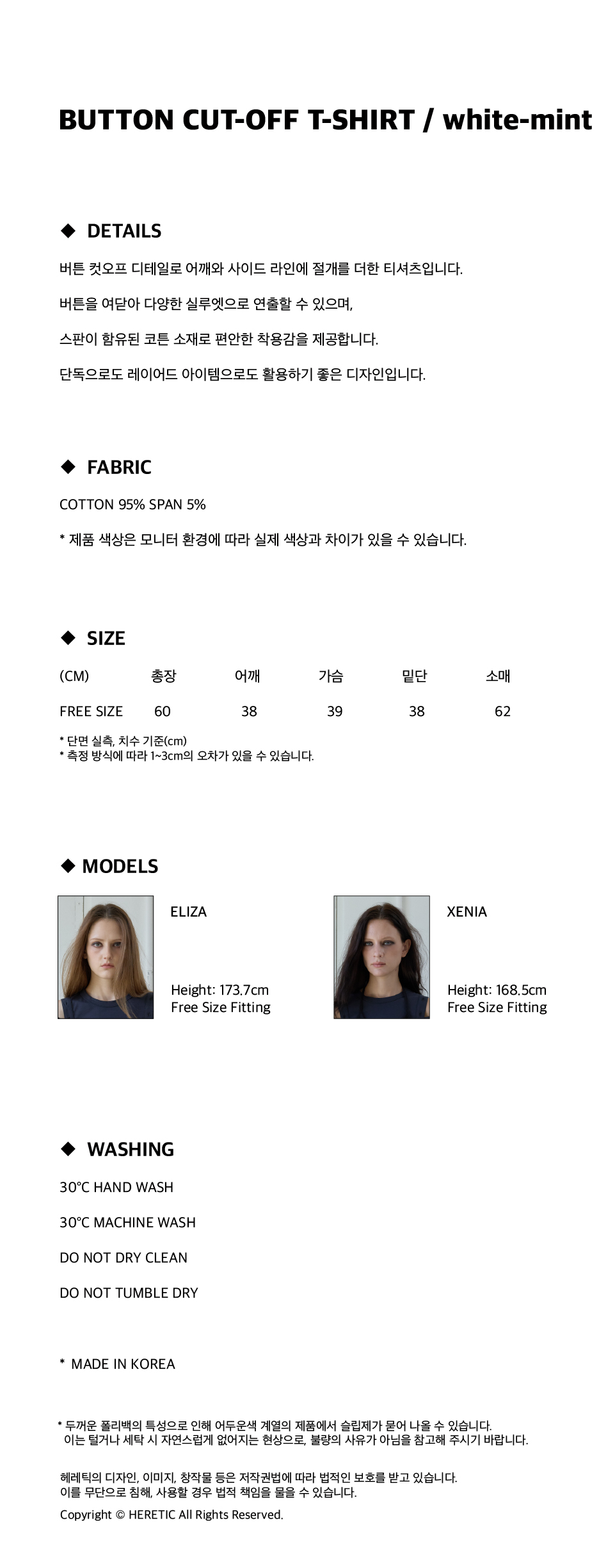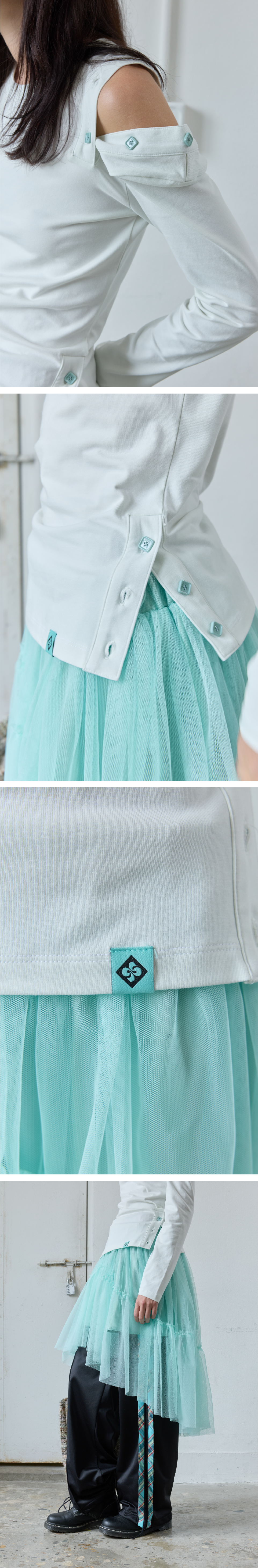 BUTTON CUT-OFF T-SHIRT / white-mint
