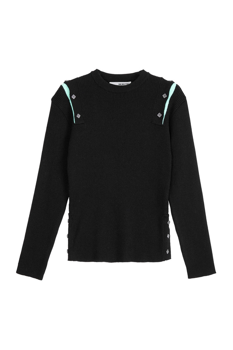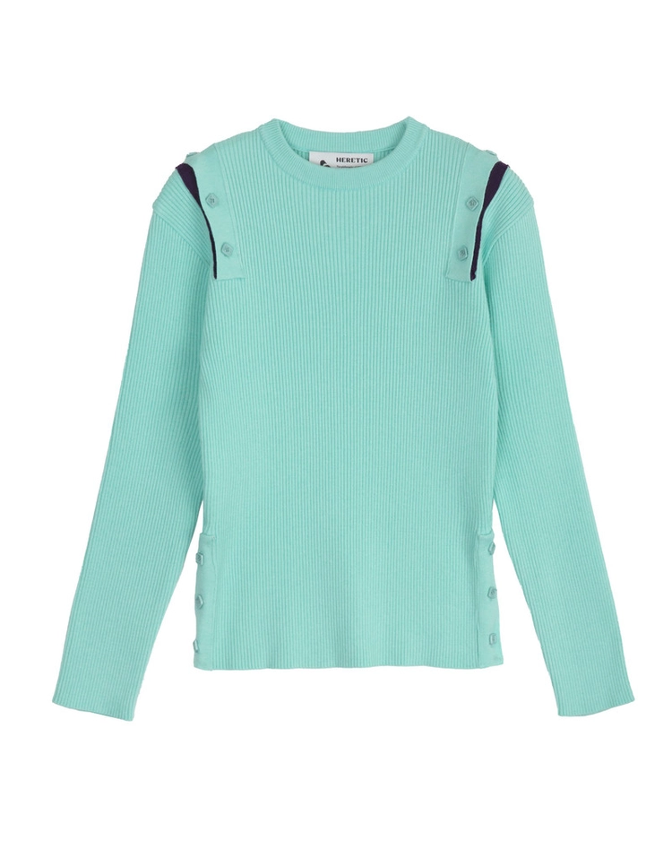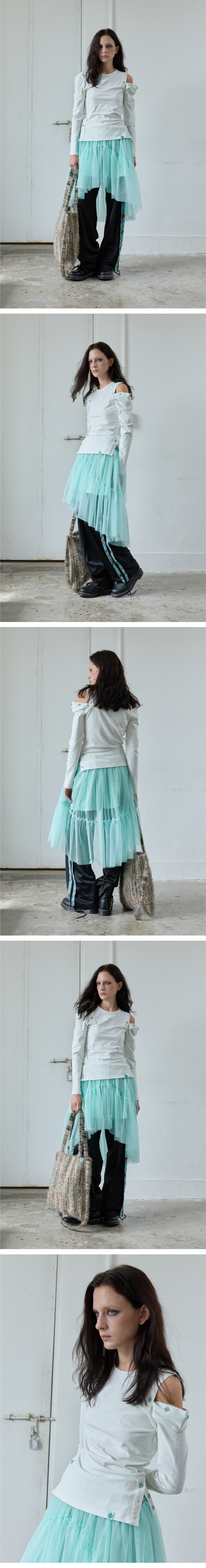 BUTTON CUT-OFF T-SHIRT / white-mint