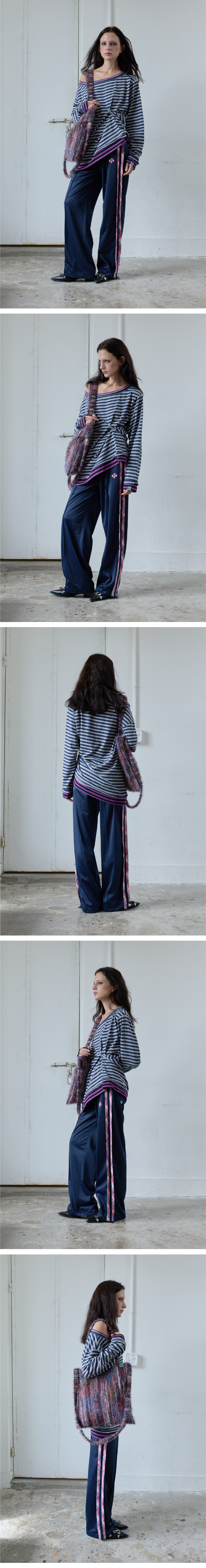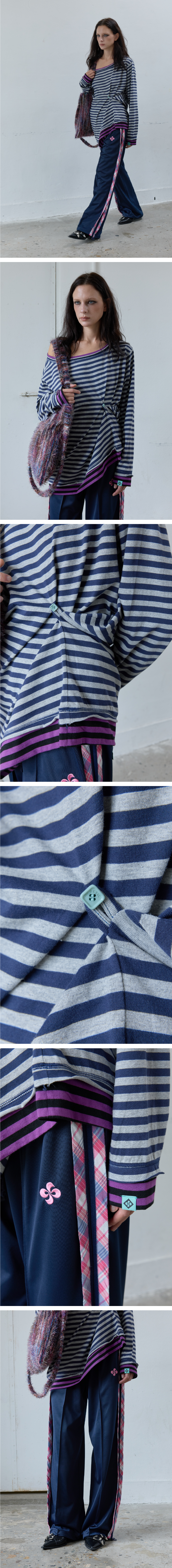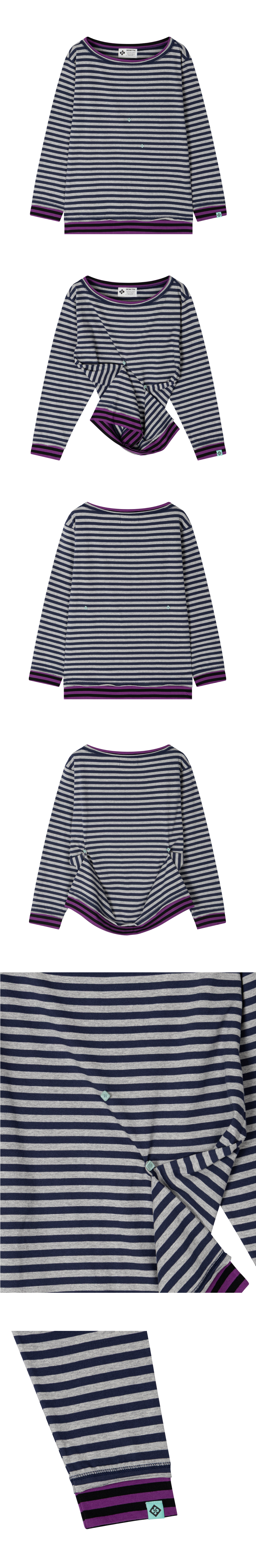 BUTTON STRIPE RAW EDGE T-SHIRT / grey