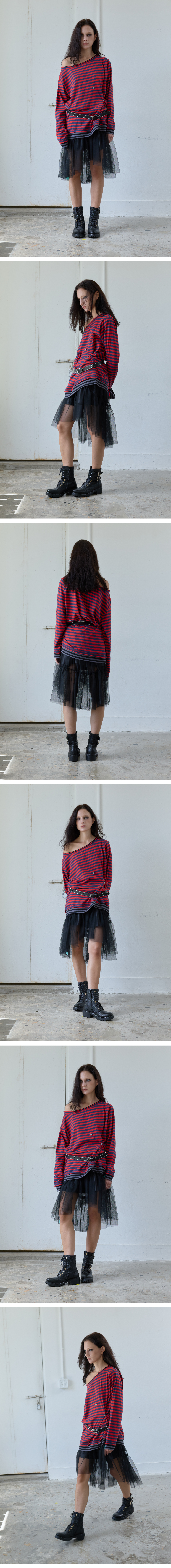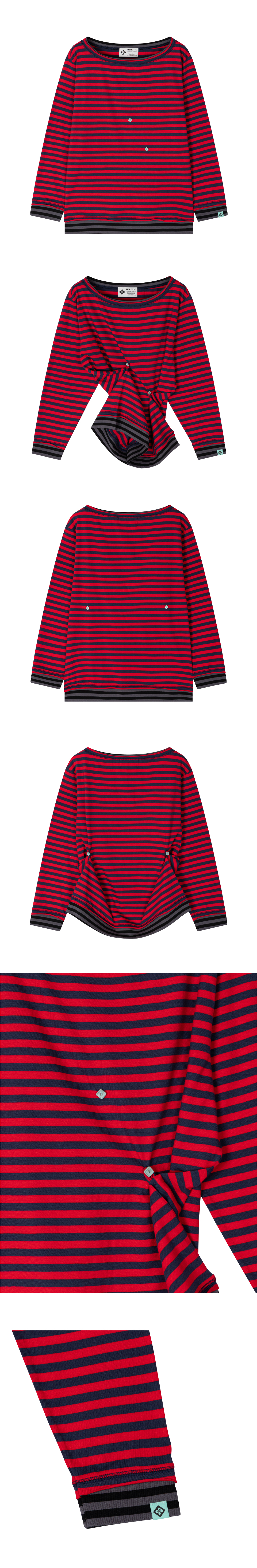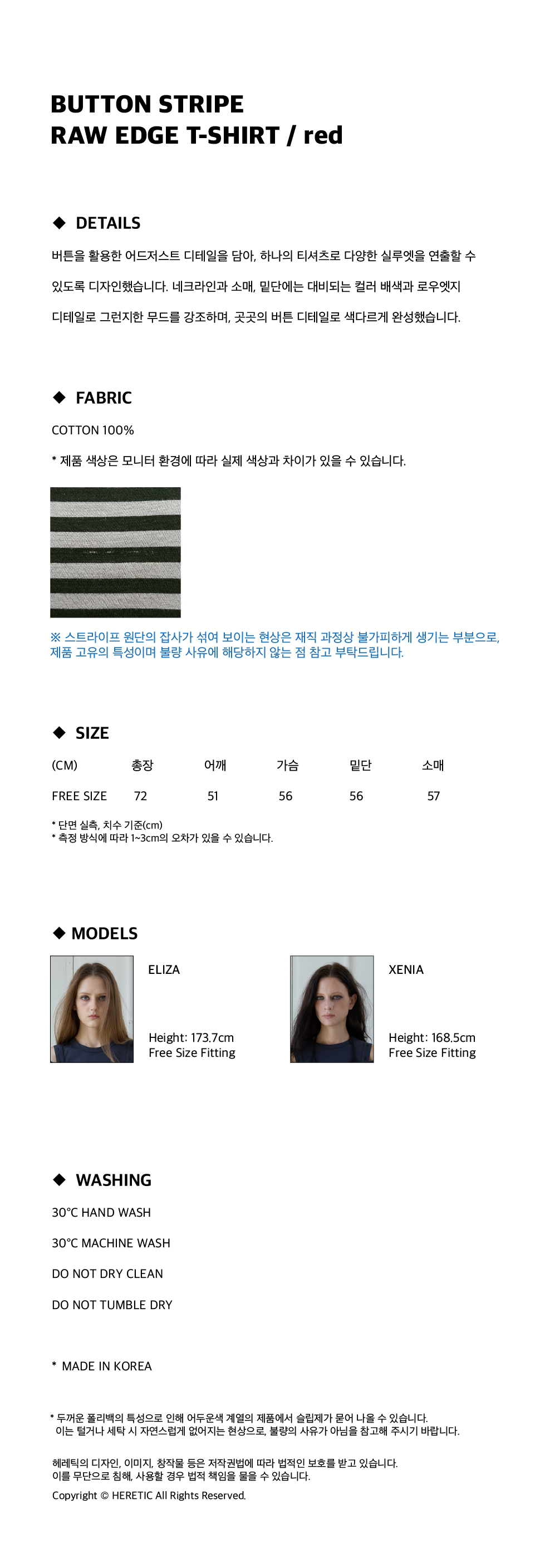 BUTTON STRIPE RAW EDGE T-SHIRT / red