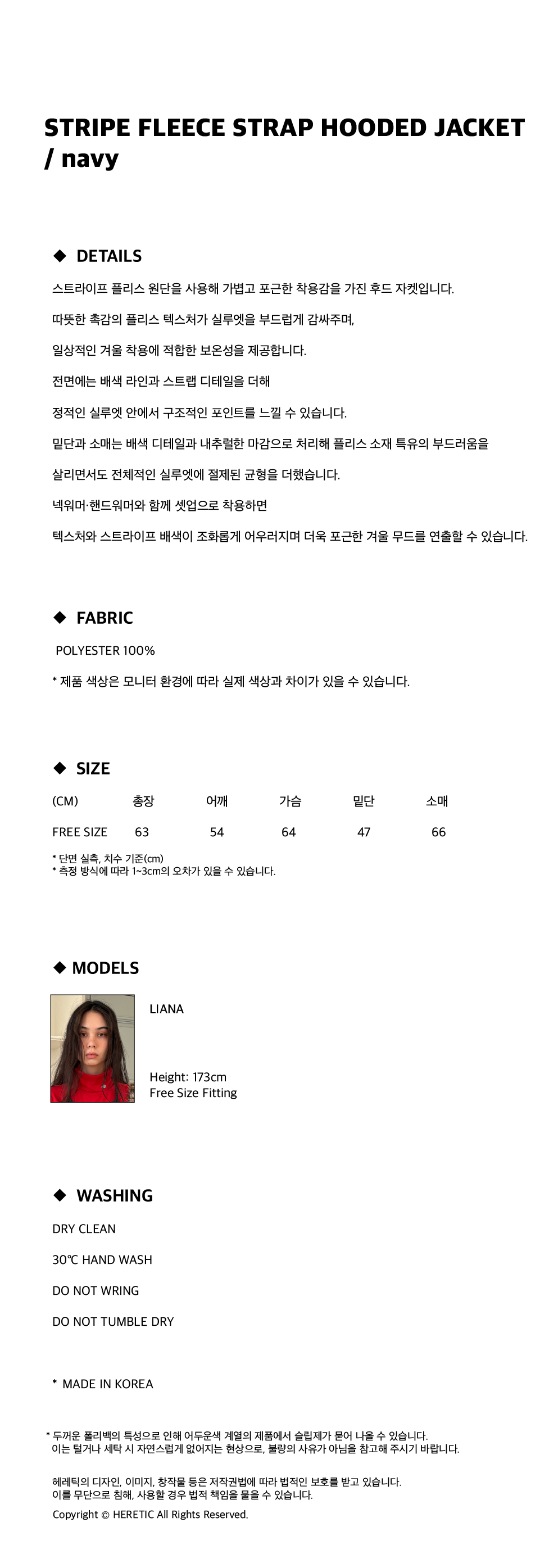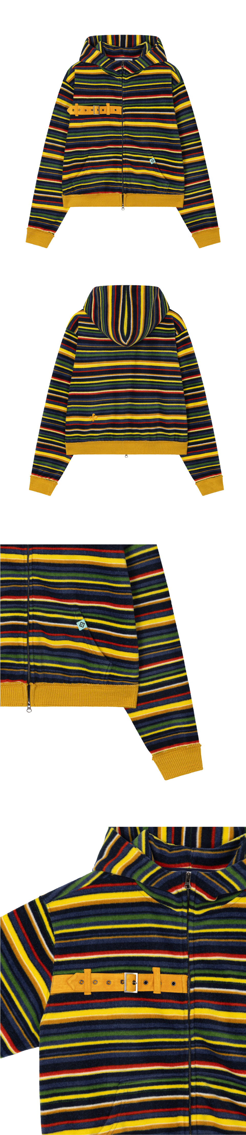 STRIPE FLEECE STRAP HOODED JACKET / navy