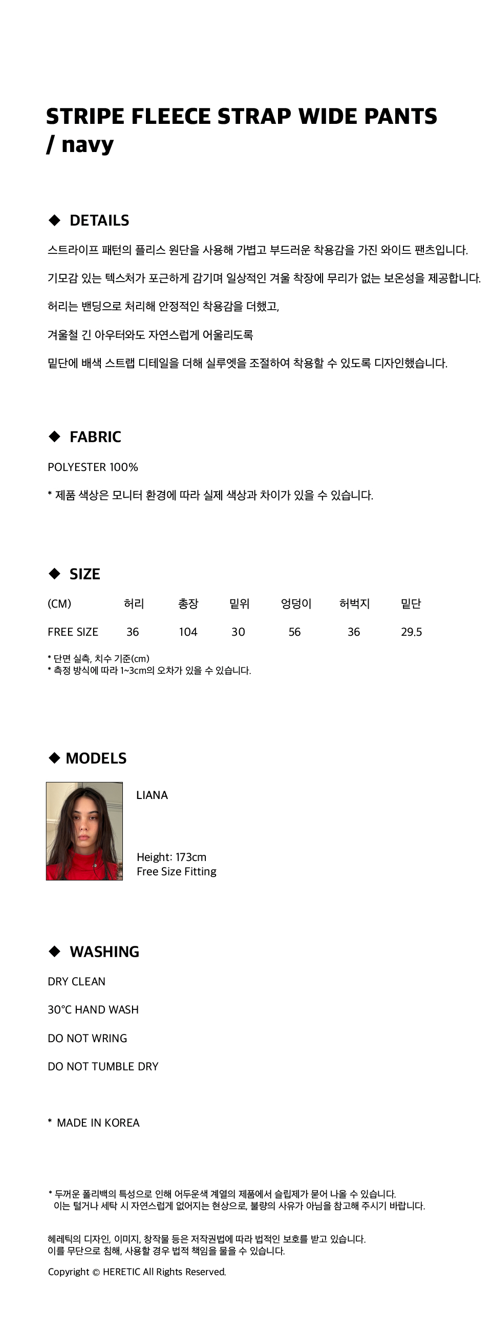 STRIPE FLEECE STRAP WIDE PANTS / navy