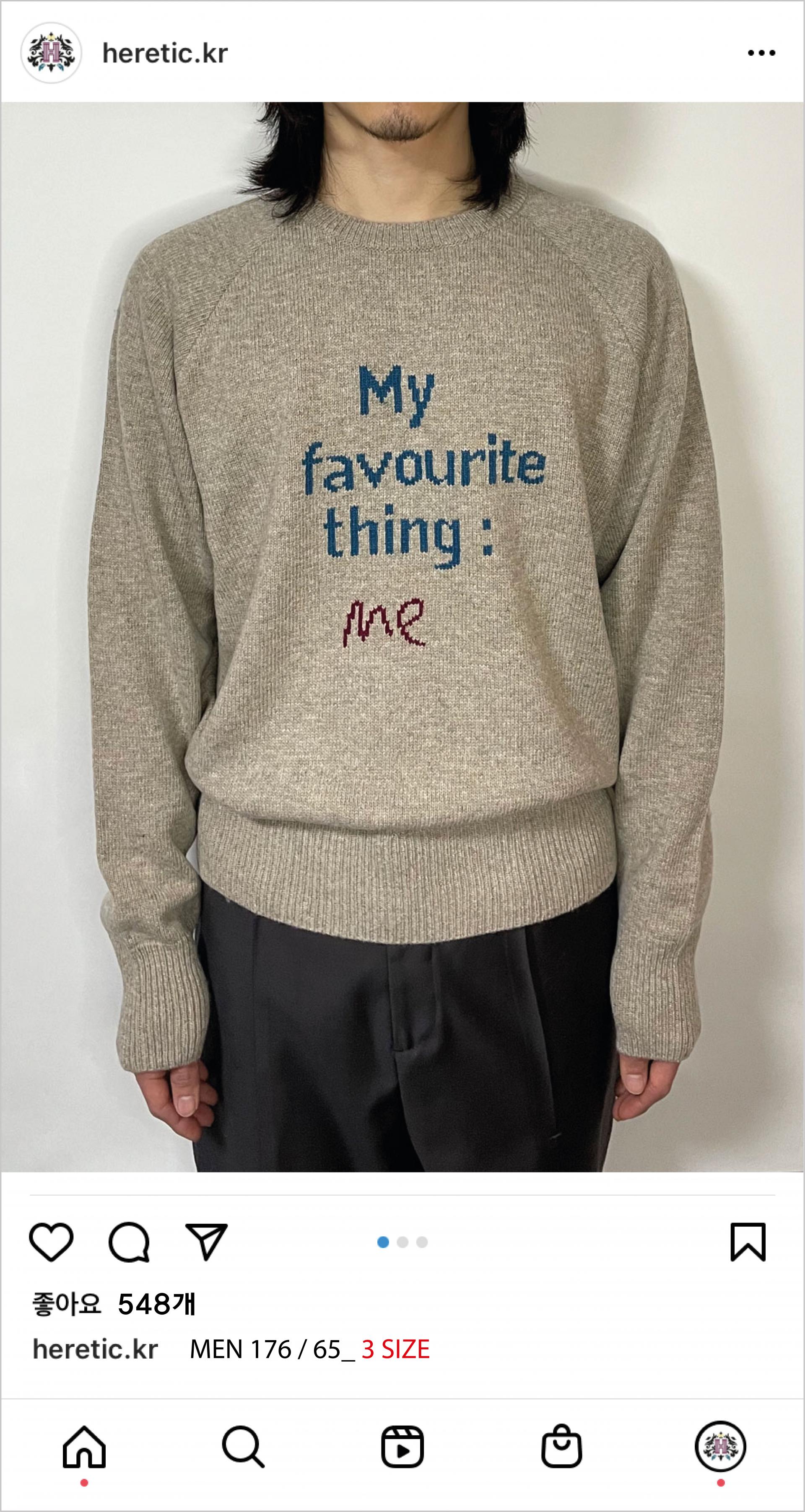 - 'My favourite thing : me' KNIT는 '다채로운 컬러'와 '숏한 기장', '긴ㅡ립' 의 디자인을 통해 HERETIC의 '컬러풀' 과 '이지함' 을 보여주는 제품입니다.