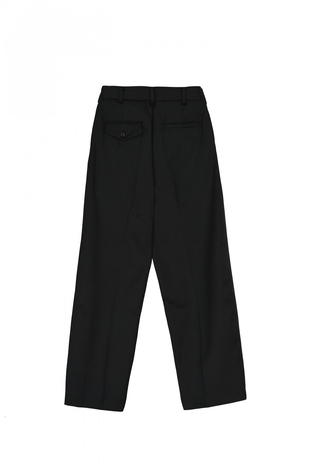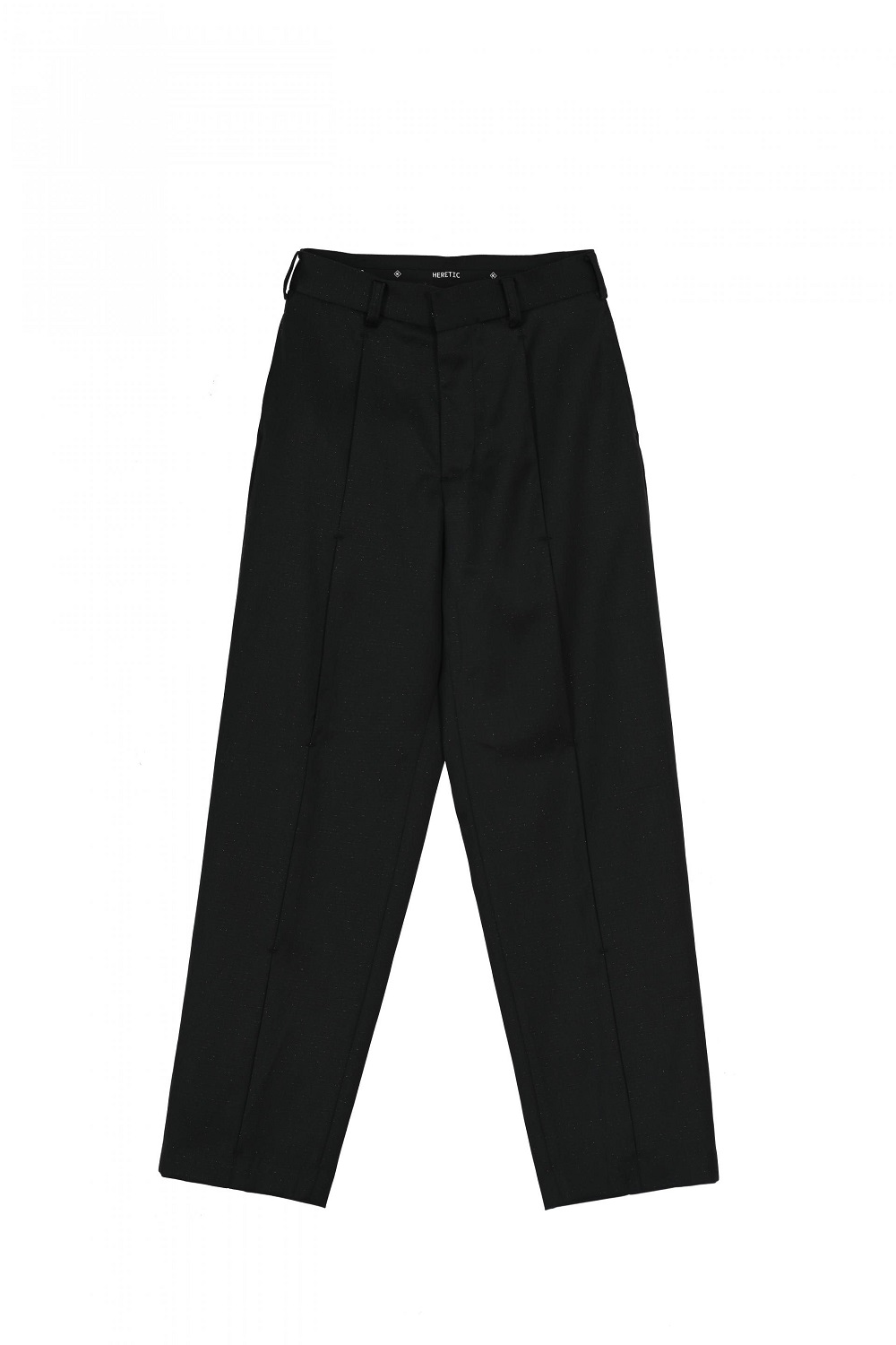 웨스트 라인의 턱을 잡는 것과 달리 허리~밑단 끝까지 바텍(-)으로 디자인한 헤레틱 핀턱 팬츠입니다.