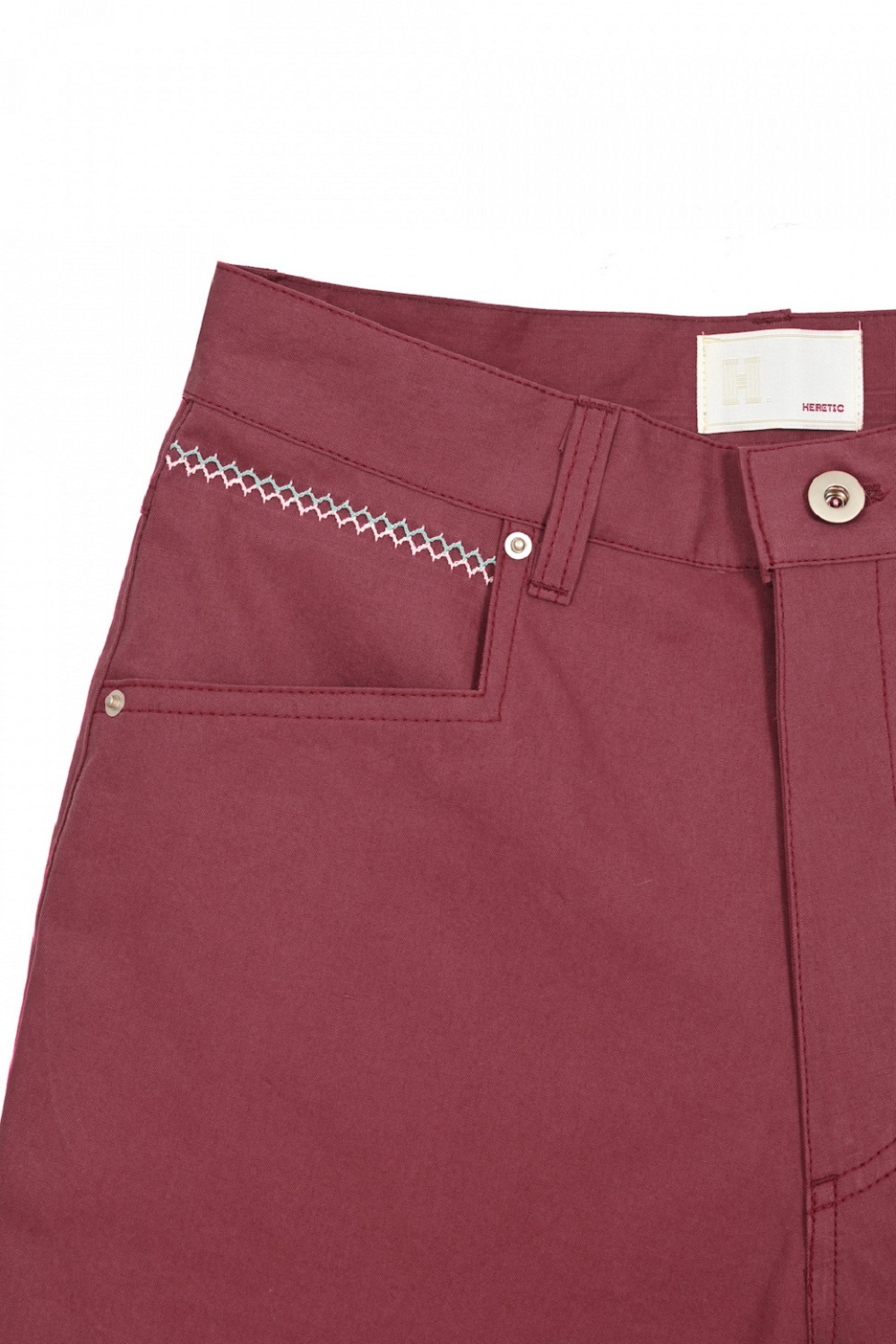사이드와 백 포켓에 마름모 모양의 자수를 추가해 한 층 더 레트로한 분위기를 살린 캐주얼 팬츠입니다.