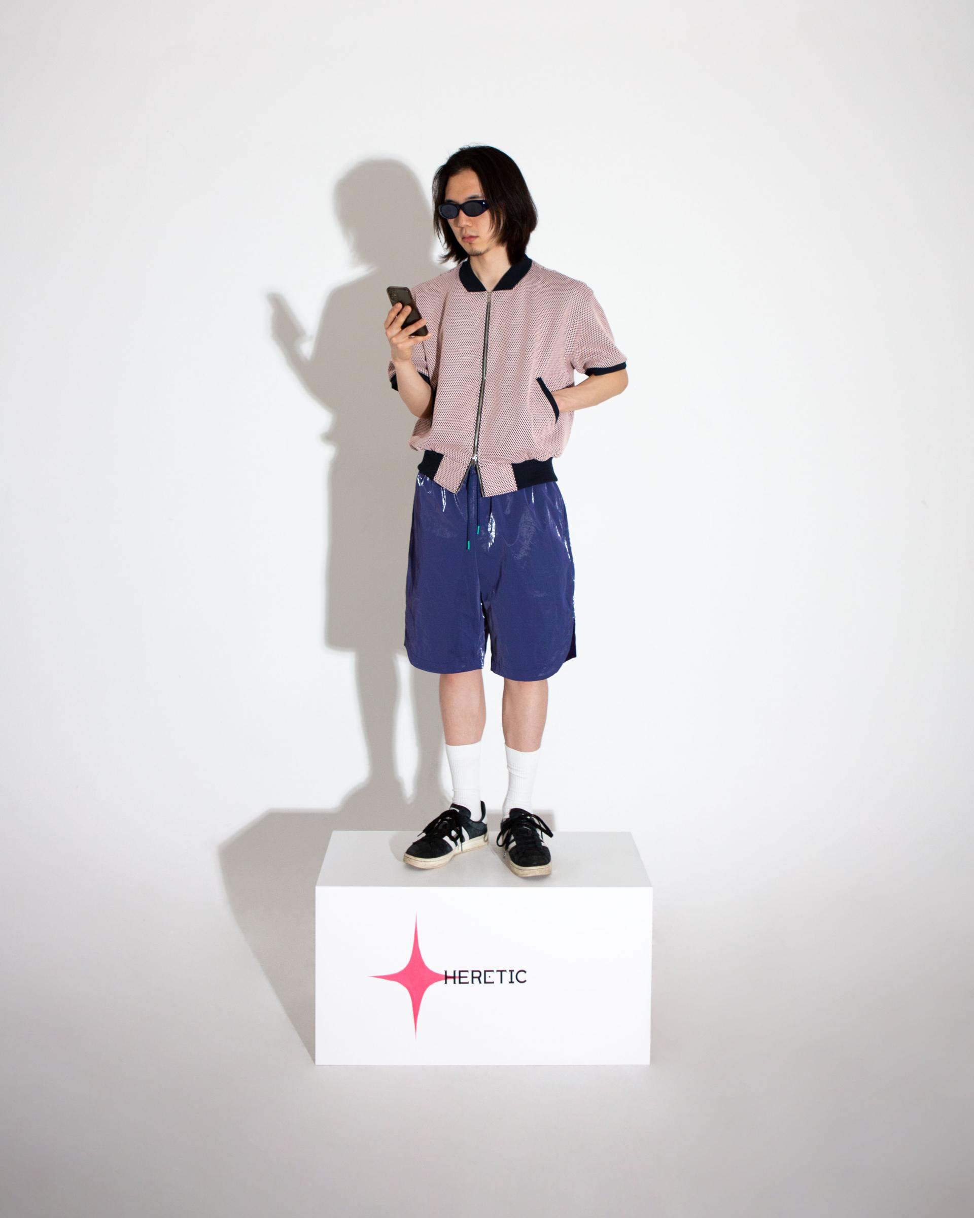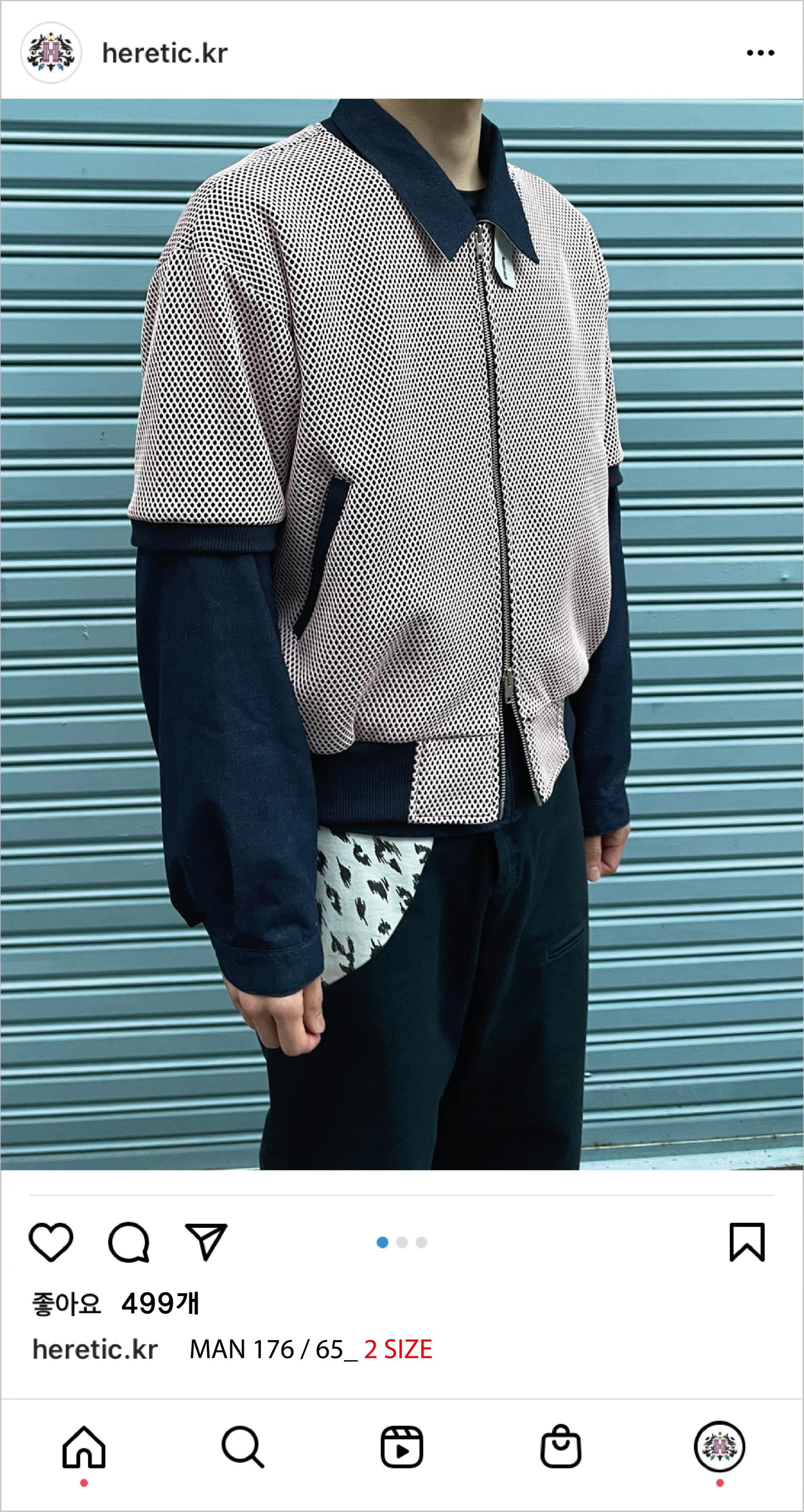 - 촘촘한 네이비 메쉬🕸를 바탕으로 연핑크의 메쉬🕸가 합포된 '컬러풀'하면서도 '유니크한' 원단을 사용하였으며,